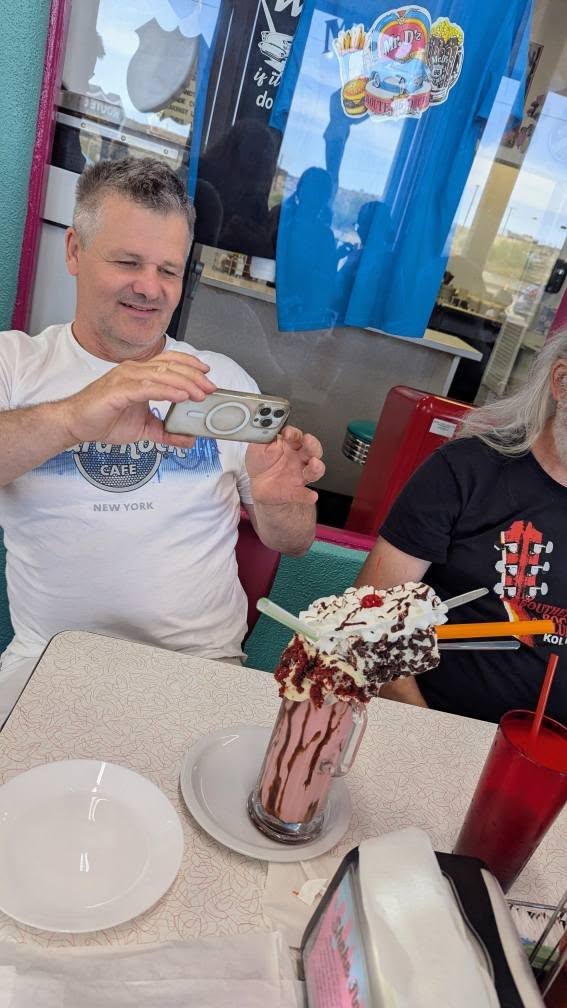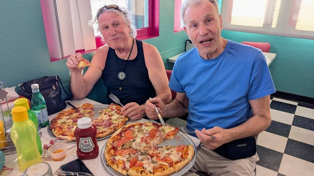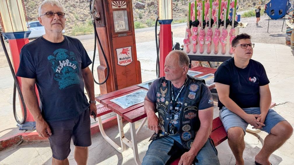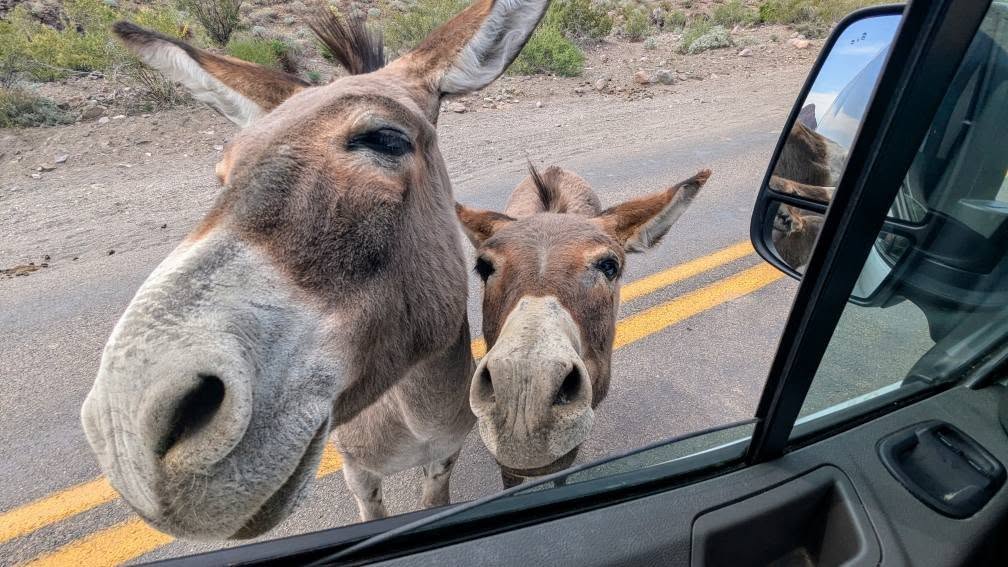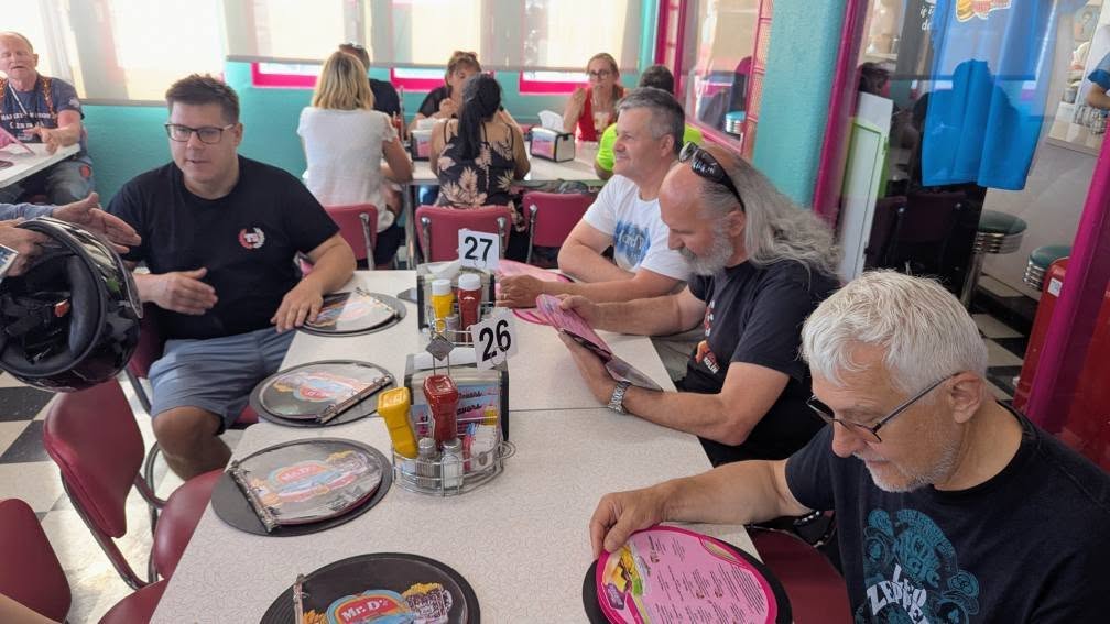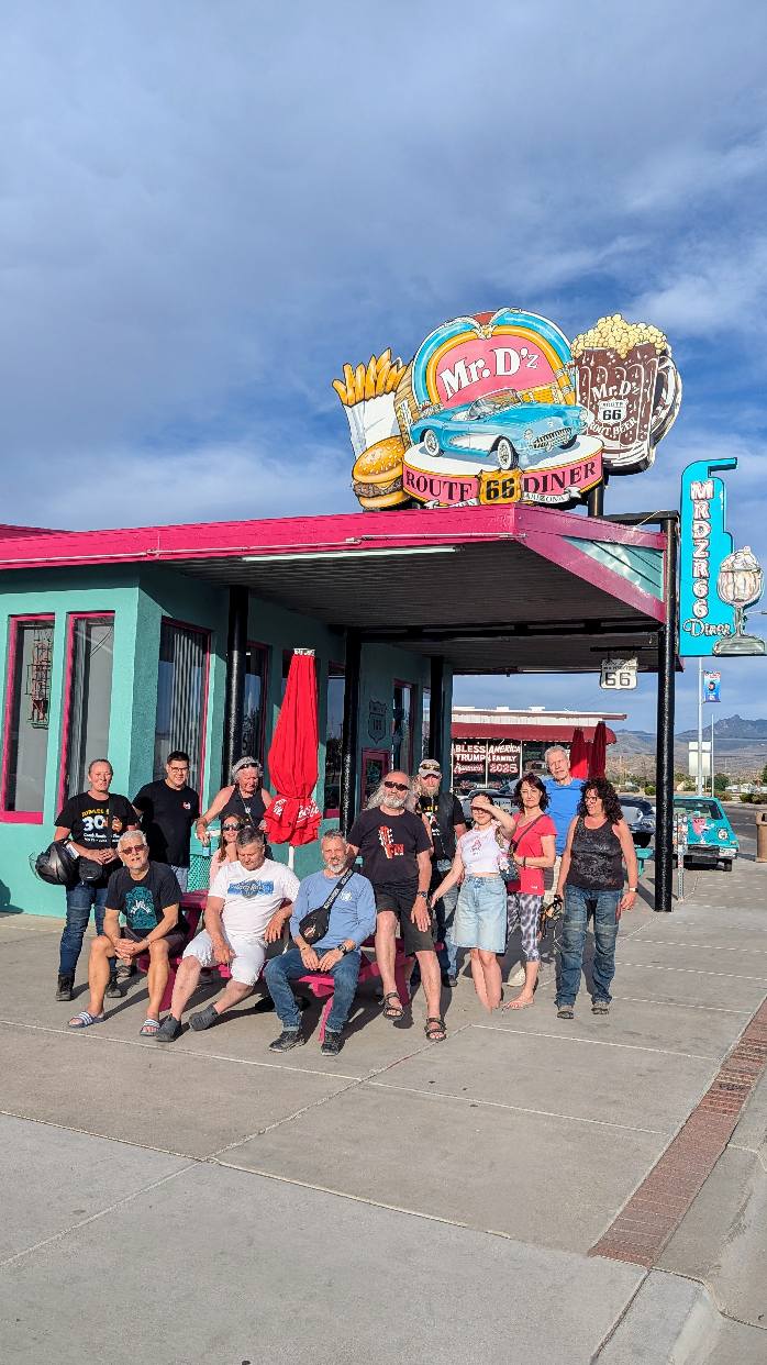 Přes krátkou návštěvu Hooverovy přehrady zpět na Route 66 a pak mostem nad Colorado river do Arizony. Zde jsme se setkali se zástupci početné "Oslí iniciativy" ze zlatokopeckého Kingmanu, přejeli serpentinami průsmyk Sitgreaves Pass a nakonec přistáli v Kingmanu. Tam nás čekala famózní obědo-večeře v ještě famóznějším restaurantu Mr. D'z.