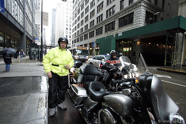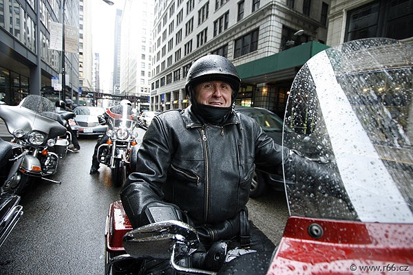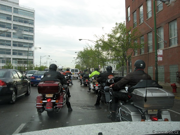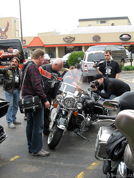 Jakkoliv byl let úmorný, po příletu bylo pro naši posádku odměnou vysoce vítané klima severovýchodní části Spojených států, jakož i přítomnost Martyho Bilecki, bývalého chicagského policisty a známé postavy R66, který na nás čekal se svou ženou. Marty doprovodil náš konvoj na okraj Větrného města, jak se Chicagu přezdívá, do pobočky půjčovny Eaglerider, kde na nás čekaly připravené motorky Harley Davidson.