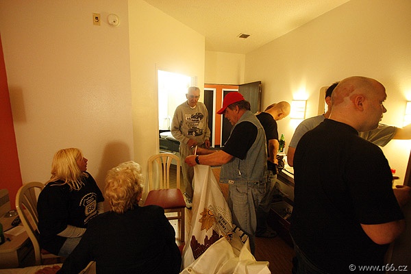 První den naší cesty byl úspěšně zakončen a hlad a žízeň osazenstva byly utišeny chlazeným pivem a pizza hostinou, kterou připravila Martyho dcera Mary Ellen a její manžel.