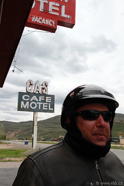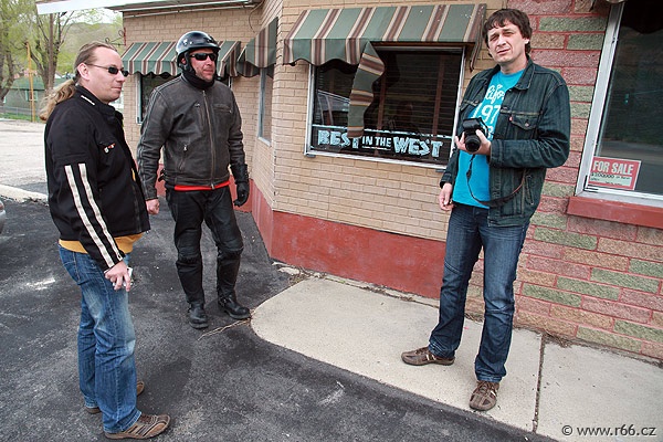 Máme za sebou rekordních 360 mil jízdy (delší etapa už není v programu) a náš sólo-motorkář Zdenda Bartoň jede v naprosto famózní formě. Ale nemá to jednoduché - musí si na silnici poradit sám. Ale vypořádal se už i s horšími podmínkami - loni na Route 66 ve sněhu a v dešti to tedy nebyla žádná legrace.