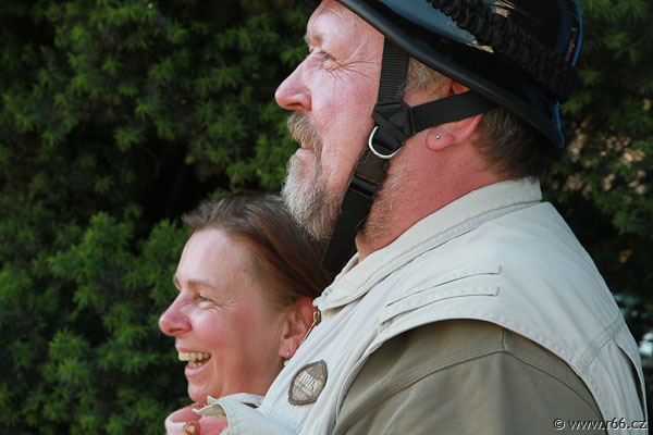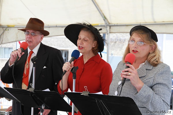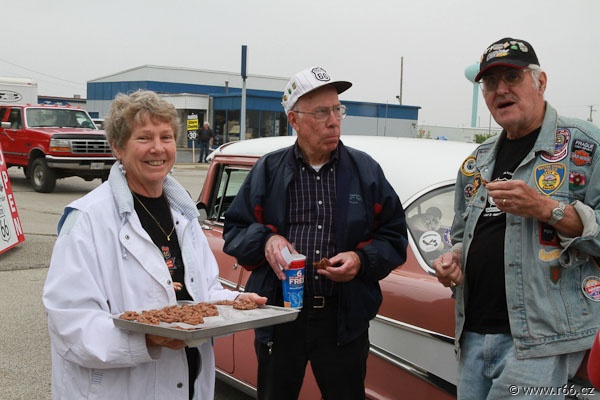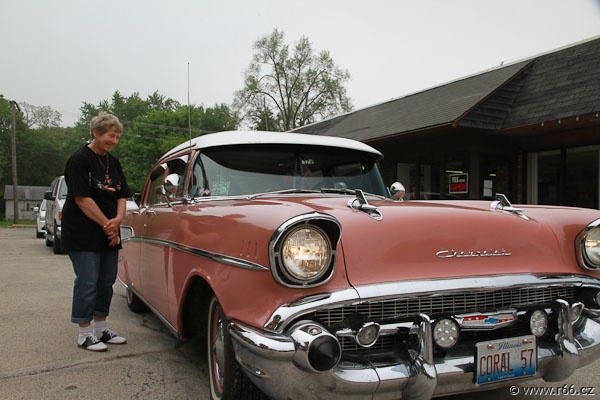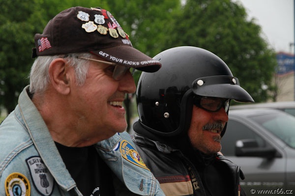 Na další cestě nás pak provázely dva nádherné americké automobily, jejichž posádku tvořili staří dobří známí a příznivci České asociace Route 66: Marty, Geri, Dean a Jan. Společně jsme vytvořili kolonu radost pohledět. A skvěle jsme zapadli do rázu celého dnešního hemžení na Route 66.
