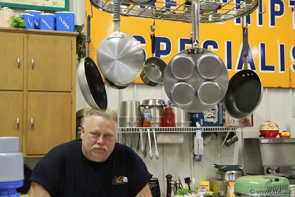 A začalo to hned ráno: Sam Reichert, velký sběratel amerického retra nás pozval do svého neuvěřitelného a nekonečného království, které zatím žádná výprava ještě nikdy neměla možnost shlédnout. Zde se též odehrál další útok na naše žaludky – pravá americká snídaně vlastnoručně připravená hrdým hostitelem.