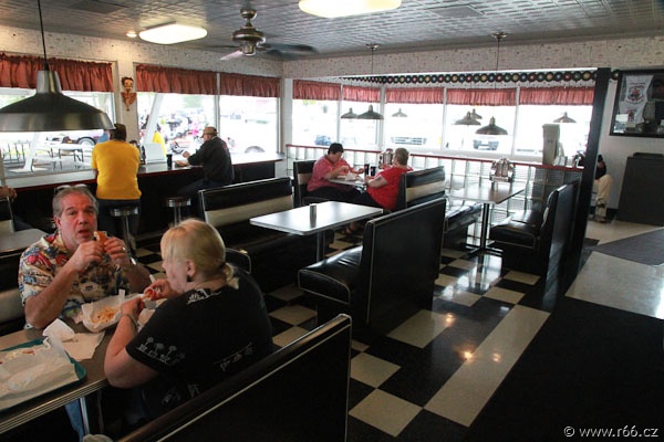 Právě na tuto sobotu totiž připadl takzvaný Red Carpet Event, což bychom mohli volně přeložit jako „den otevřených dveří na Route 66“. Všude plno lidí, historických aut, muziky a zábavy. A do toho ještě my Češi a Slováci. Dokonalé!