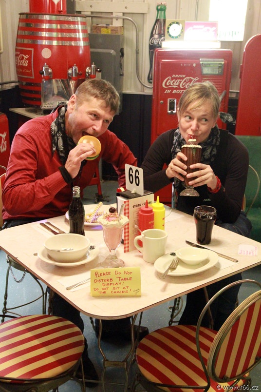 Navíc je tento víkend každoročně takovým „dnem otevřených dveří Route 66“, a tak všude pořádají spoustu nejrůznějších akcí , na celé trase se pohybuje mimořádně velké množství lidí a záplava krásných starých automobilů, samozřejmě výhradně americké výroby. A do této výjimečné atmosféry jsme dokonale zapadli i my.