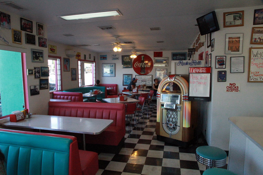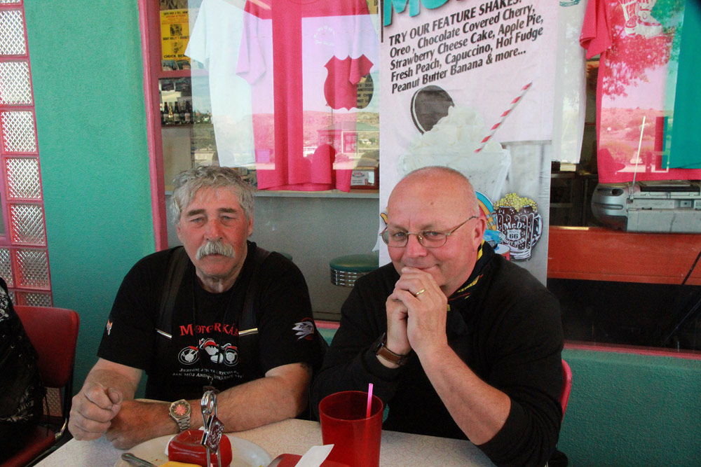 Ráno jsme si zpestřili výbornou a vydatnou snídaní ve stylové a vyhlášené restauraci Mr. D’z v Kingmanu, kde nás očekával dobrý přítel Jim Hinckley, známý spisovatel a historik, spolu se svou manželkou.