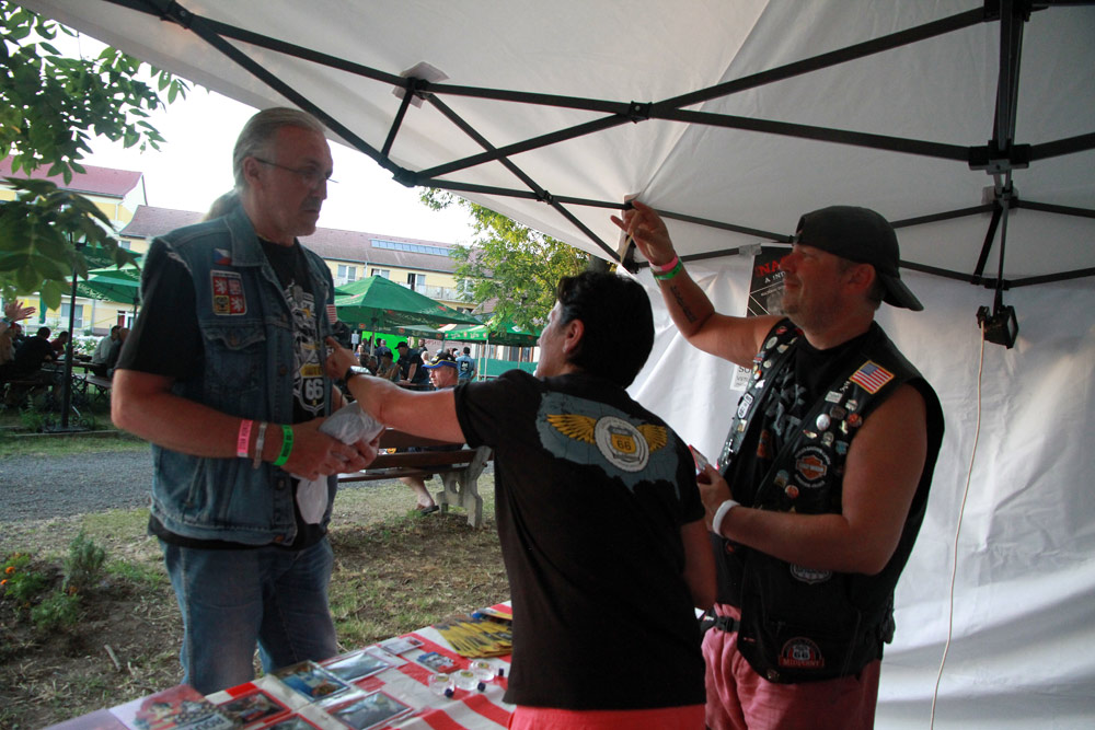 I letos se Česká asociace na Slovensku prezentovala vlastním stánkem, v němž se průběžně zastavovalo velké množství našich přátel, fanoušků, ale i těch, kteří se o našich aktivitách chtějí dozvědět více. Kromě toho jsme se ve čtvrtek postarali o kulturní program – v zahradě Park Hotelu v Hokovcích jsme promítli náš film ROUTE 66 REVISITED!