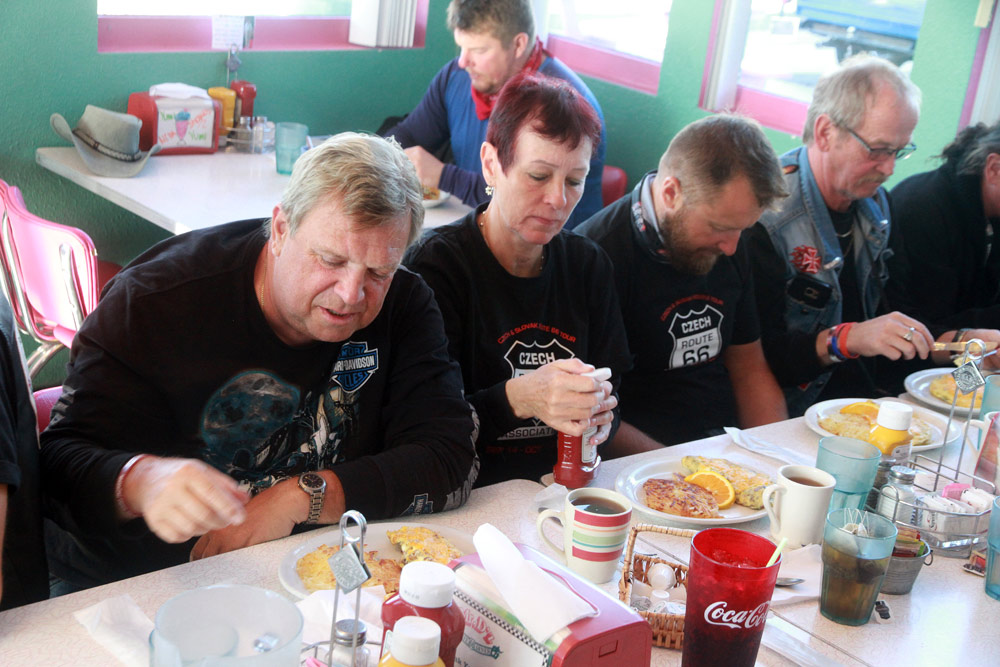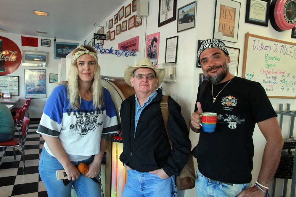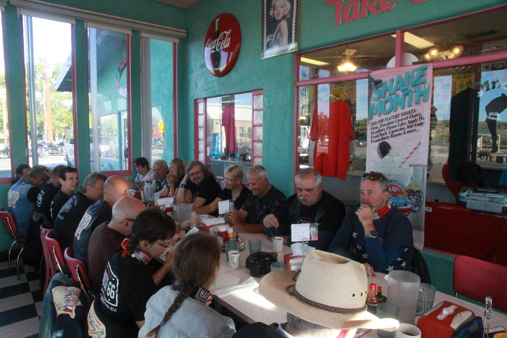 Po ránu jsme bohatě posnídali v super stylovém podniku Mr. D'z v Kingmanu. Zde nás svojí návštěvou potěšil uznávaný spisovatel a historik Route 66 Jim Hinckley, který ve městě bydlí. Jim se i s manželkou chystají na Evropský festival Route 66, který Česká asociace Route 66 pořádá příští rok v srpnu ve Zlíně, což je super!