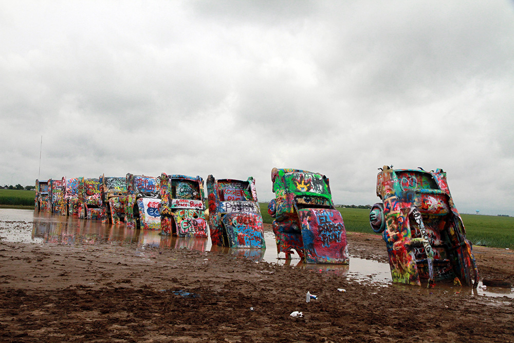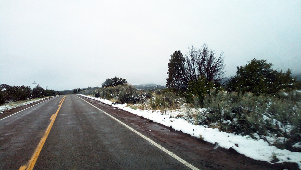 Déšť nás provázel už od ranního startu z Amarilla. A díky nízkým teplotám se před Santa Fe na chvilku změnil v poletující sníh. Naštěstí se na silnici neudržel, takže celá naše motorizovaná jednotka bezpečně dorazila do cíle.