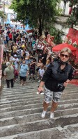 Prošli jsme se též po barevných schodech Escalária Selaron a na závěr oficiálního programu nás vláček dopravil na vrch Corcovado, kde se tyčí slavná socha Ježíše Krista. Tady si však zatažené počasí vybralo svoji daň. Kristovu sochu jsme díky husté mlze mohli bohužel spíš jenom tušit. No škoda, ale nedá se nic dělat. Na vrtochy počasí jsme krátcí.