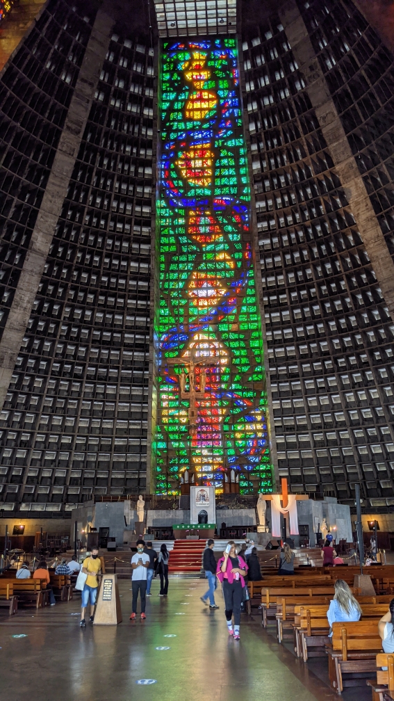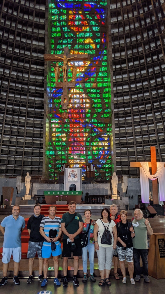 Náš autobus nás spolehlivě vozil od jedné pamětihodnosti ke druhé: Nnavštívili jsme stadion Maracana, který je sice dočasně uzavřen pro veřejnost, ale brazilská fotbalová atmosféra je cítit i z venkovního prostoru. Pak jsme na chvíli zastavili na "sambodromu", který samořejmě skutečně ožívá jen jednou za rok, a to v době karnevalu. A fantastické pocity vyvolává i prohlídka Metropolitní katedrály Svatého Sebastiána - to je opravdový vrchol moderní brazilské architektury!