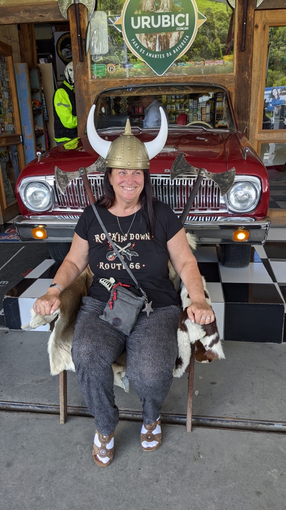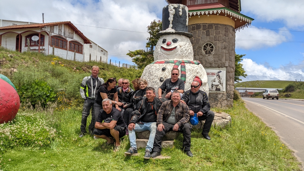 Jako vždy i dnes jsme zastavili u bran města Sao Joaquim, které velkým plastovým sněhulákem všem dává na srozuměnou, že právě zde se nachází jediné místo v Brazílii, kde sněží. Občas. Jednou za pár let.