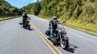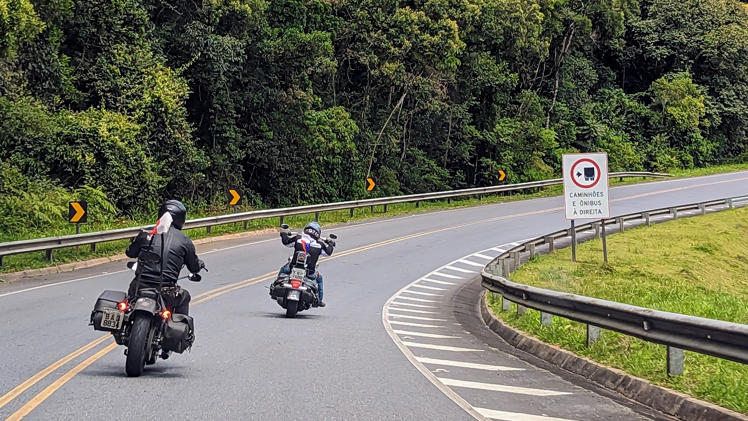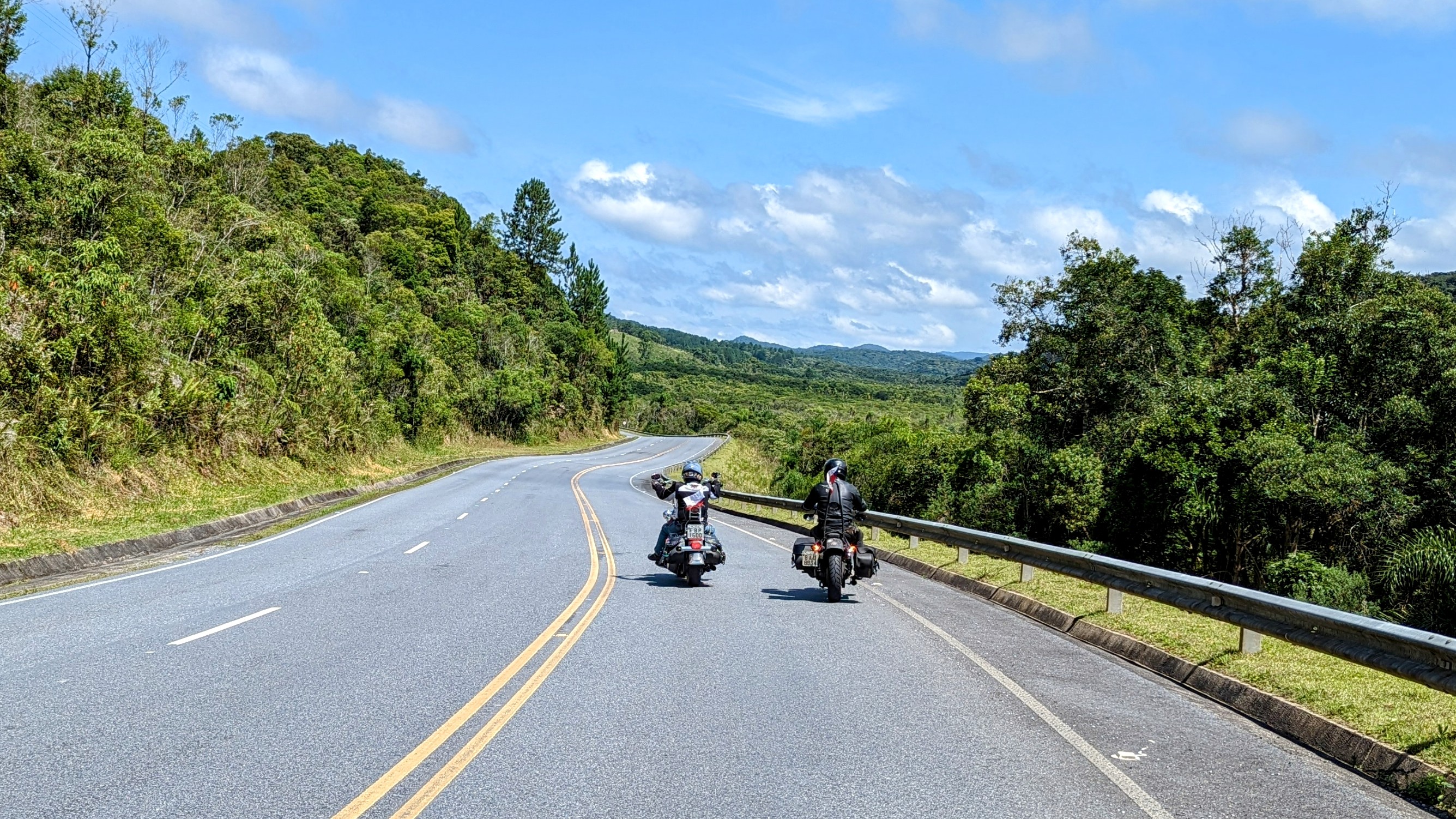 Nejsem si úplně jist, ale řekl bych, že tahle cesta nemá na světě obdoby: Rastro da Serpente, to je více než dvousetkilometrová jízda, během níž projedete neskutečných 1200 zatáček. Naprosto plynule a souvisle. Pokud se chcete podívat na mapu, tak hledejte město Capao Bonito ve státě Sao Paulo (to je začátek) a Bocaiuva do Sul ve státě Paraná, tam jízda končí. Je to vyhlášená brazilská motorkářská trasa a je ctí každého bikera ji zdolat. A my jsme tam dnes byli a celou ji projeli. A krásné slunečné počasí ten zážitek ještě umocnilo.