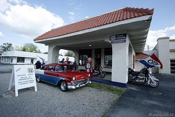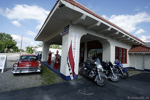 O pár hodin později a několik mílí dál jsme dorazili do města Galena v Kansasu proslulém starou bezvadnou benzinkou 4 Women on the Route (4 ženy na routce). Když tohle místo a staré zrezivělé odtahové auto "Tow tater" viděli kluci od Pixaru a Disneyho, inspirovali se pro vytvoření charakteru Buráka v oscarovém filmu Auta. Benzina v Galeně je také skvělým místem, kde se můžete zastavit a užít si suvenýry Route 66, historii a klasické jídlo od amerických benzínek. Zapamatujte si – tohle je místo, kam si můžete zajít, pokud si chcete pochutnat na skvelém hamburgeru. Žádný předražený prefabrikát, jen to nejlepší středozápadní hovězí. Tady jsme se také setkali s Deanem "Crazy Leg (Šílenou nohou)" Walkerem, skvělým svérázem schopným otočit nohy o téměř 180 stupňů.