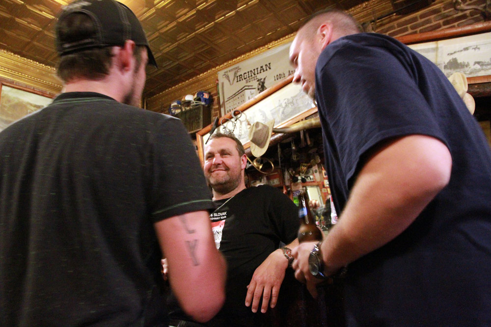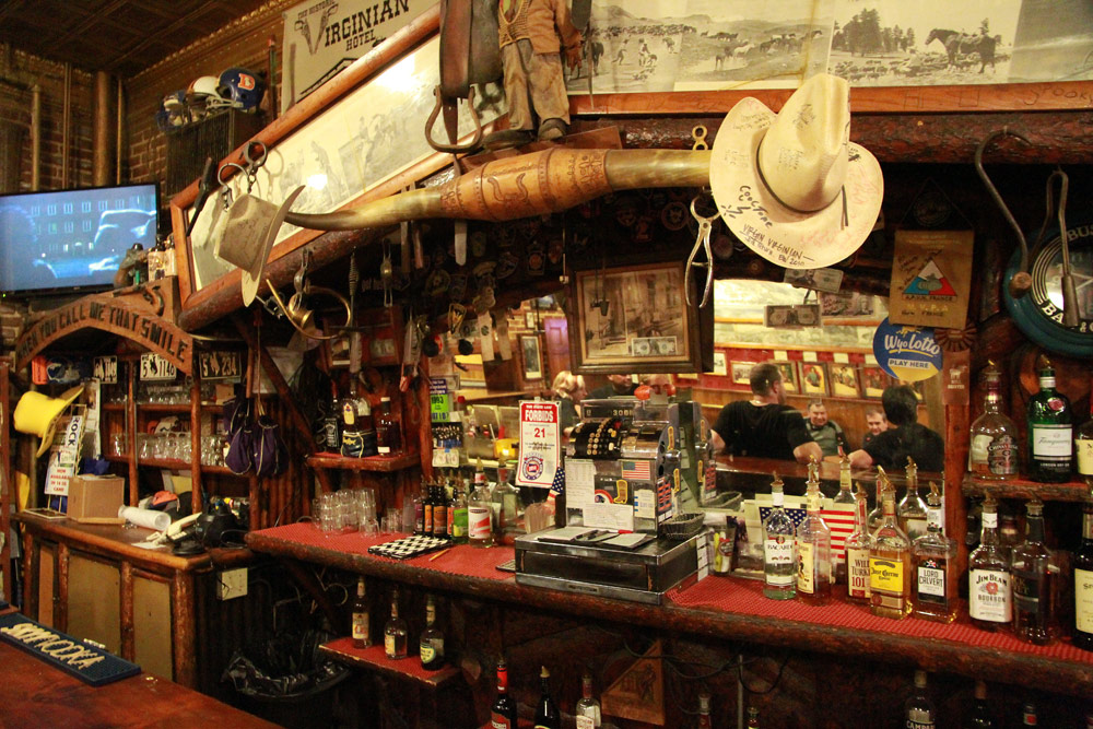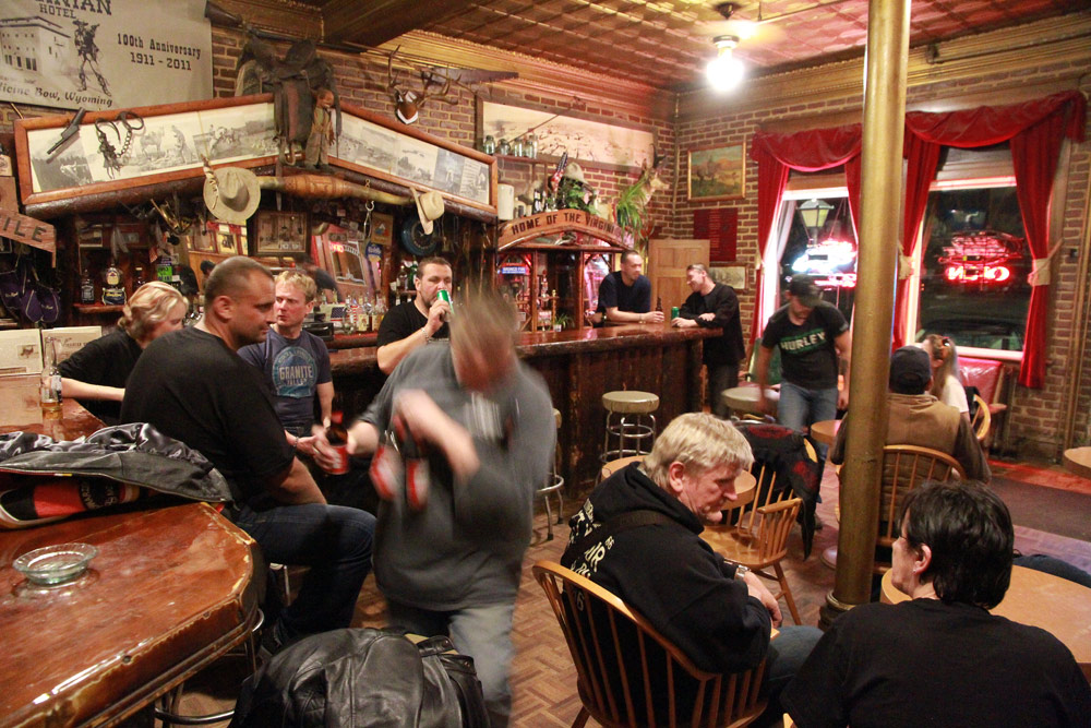Na začátku dnešní reportáže z velké cesty po Lincoln Highway, kterou pořádá Česká asociace Route 66, uveřejňujeme pár fotografiíí, pořízených v luxusně stylově vybaveném baru hotelu Virginian v místě zvaném Medicin Bow ve Wyomingu.